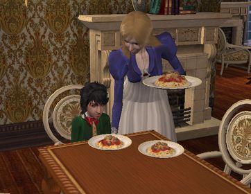 今晩は、お姉さん特製のスパゲティですよ。