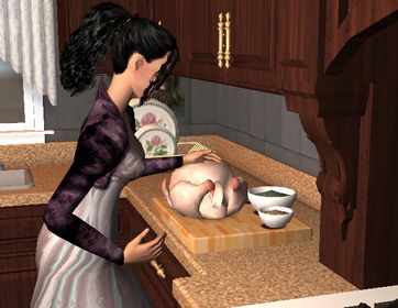 ヨハンが校長に家の中を店に回っている間、母はせっせとターキーの準備です。